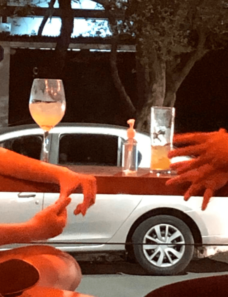 “Será que deixo a mão sobre a mesa? Seguro a taça? Coloco no colo? Não, segurar os dedos fica melhor, daí não fico sem fazer nada pelo menos… Como a gente chegou nesse assunto mesmo? Ah, foi porque falei do trabalho. Tá, mantem o foco – mas como manter o foco com uma boca dessas, me dizzzz?”