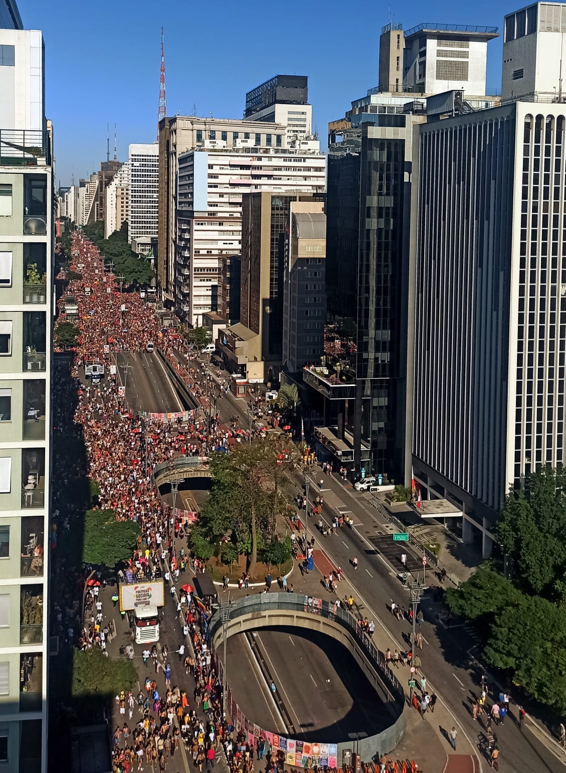 Eu penso que são os dois: só celebra quem está vivo, só (r)existe quem luta. Se por um lado é importante não reduzir as demandas de um grupo socialmente marginalizado a fazer comemorações coloridas ao som de Pabllo Vittar, por outro a própria ocupação da rua é uma forma de manifesto, de dizer “oi, estamos aqui!”. No país em que a expectativa de vida de uma pessoa trans é de 35 anos, dizer que está vivo já é muito.